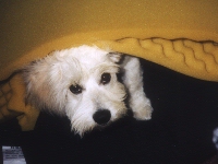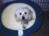 Here's Baby on punishment, and in blissful scroungy-dom: